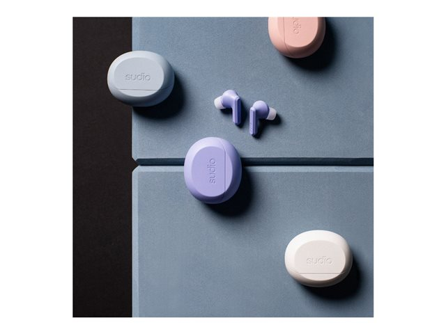 inuti örat - Bluetooth - aktiv brusradering - ljudisolerande - mjukt lila
