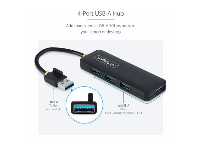 StarTech.com 4-Port USB-A Hub, 5Gbps, Bus Powered, Small Travel Mini Hub